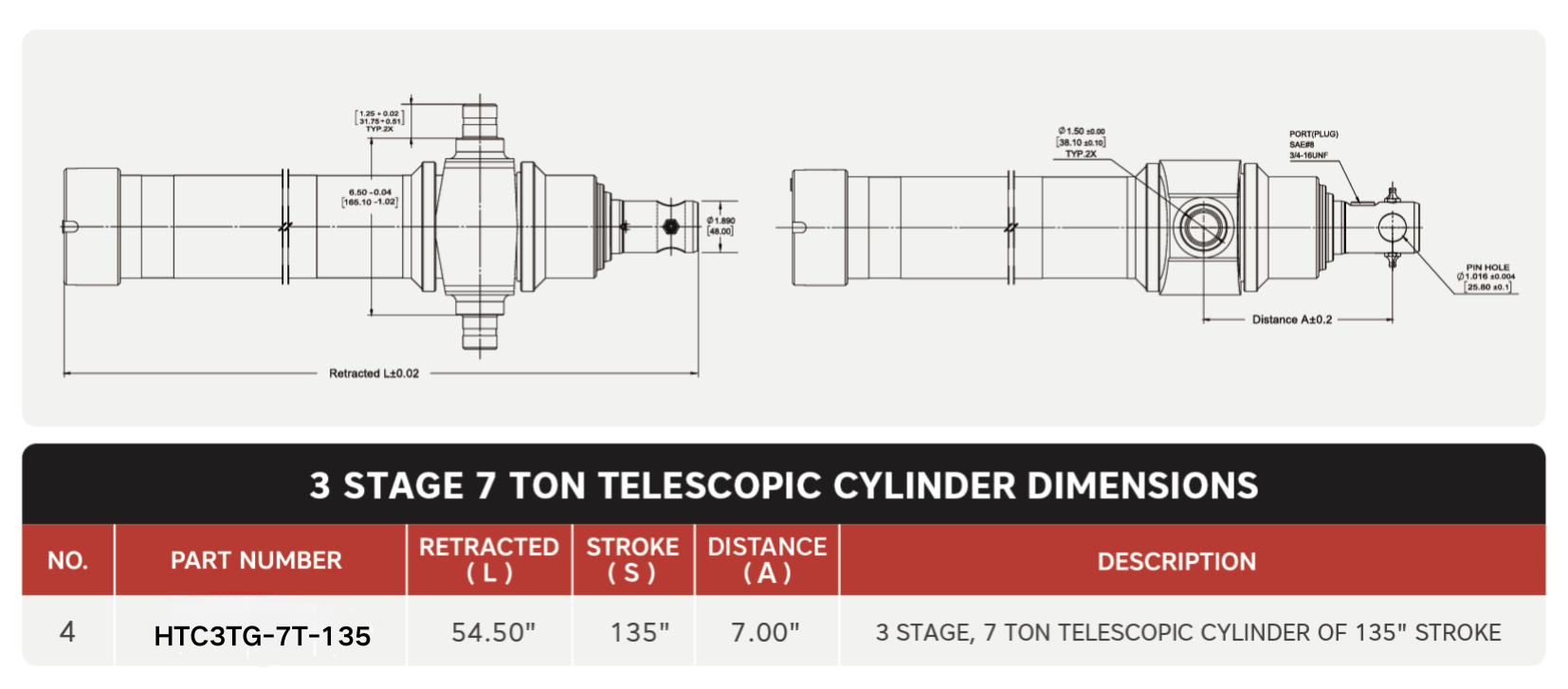 "HTC3TG-7T-135", 3-stupňové, 7 tonové 135" zdvihové teleskopické valce